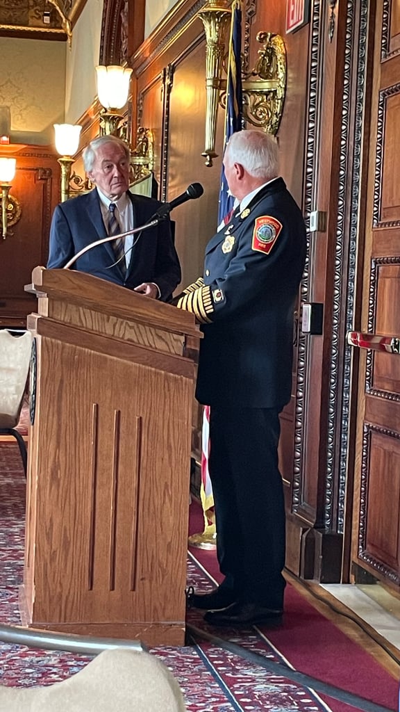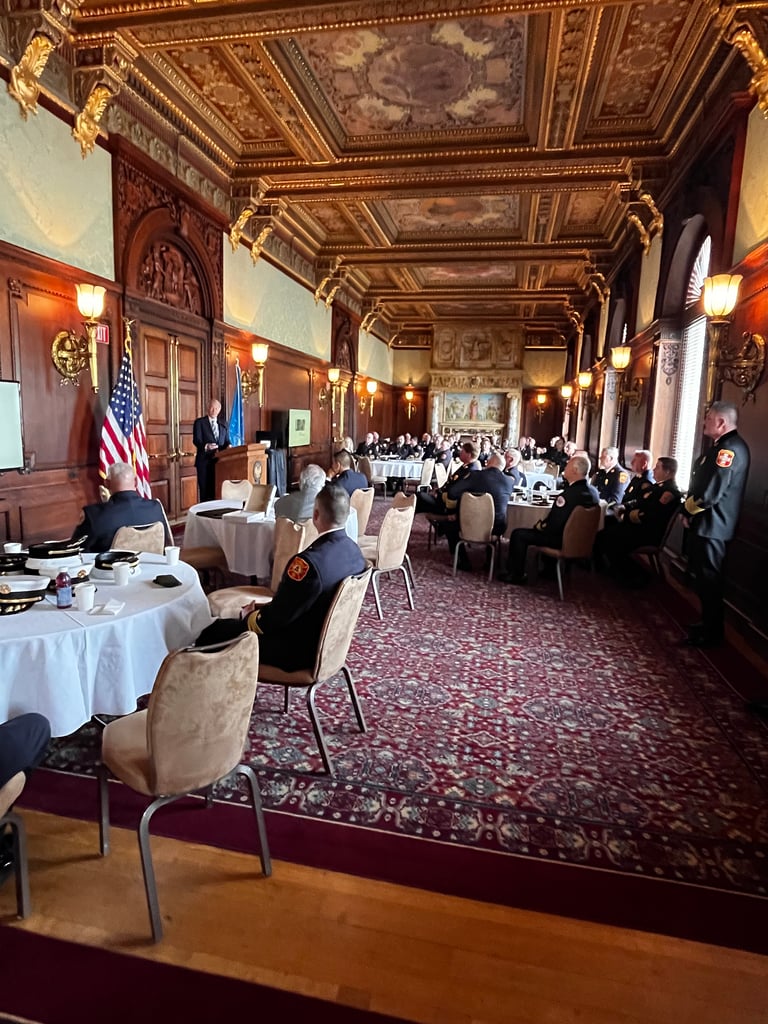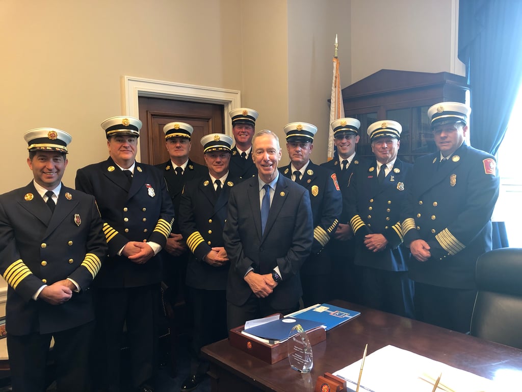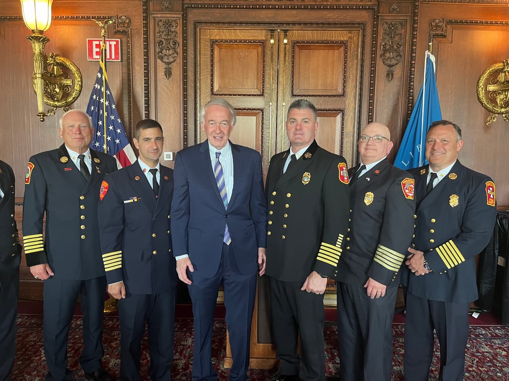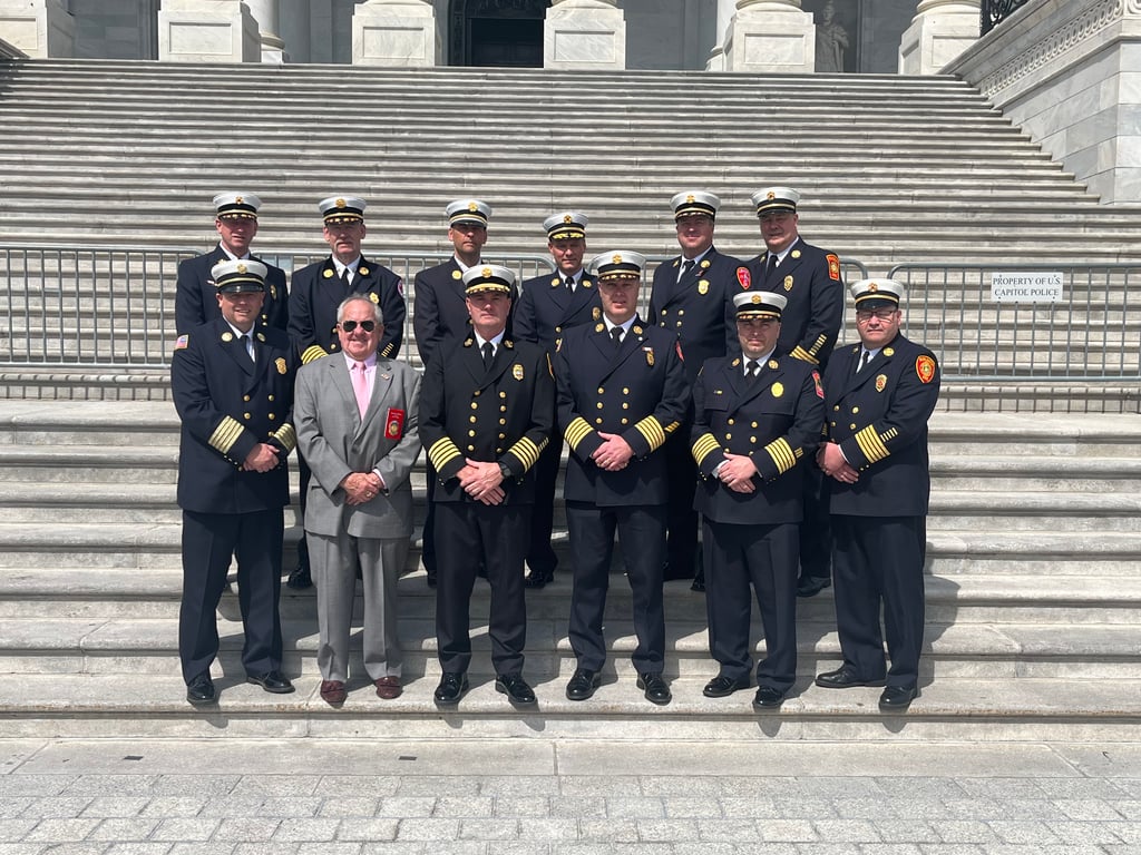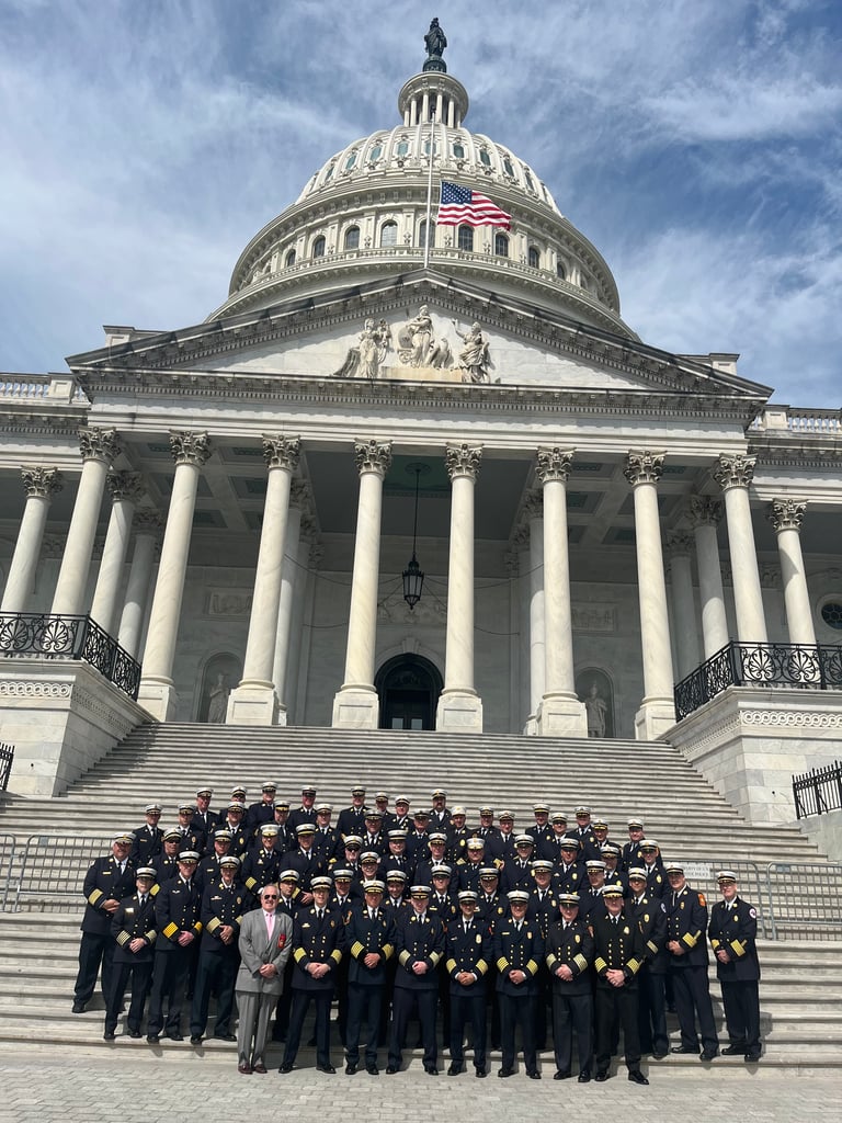 100 Massachusetts fire Chiefs visit Capital Hill on April 28, 2024 during the annual Congressional Fire Service Caucus Symposium and their annual Legislative breakfast with MA Delegation. Govermental Affairs Director Chief Bill Scoble Ret. Arrange the breakfast for the Fire Chief and the MA Congressional Delegation that is held every year at the Library of Congress, and soke to them about the important Ance of reauthorizing the Fire Grants and Safety Act legislation.