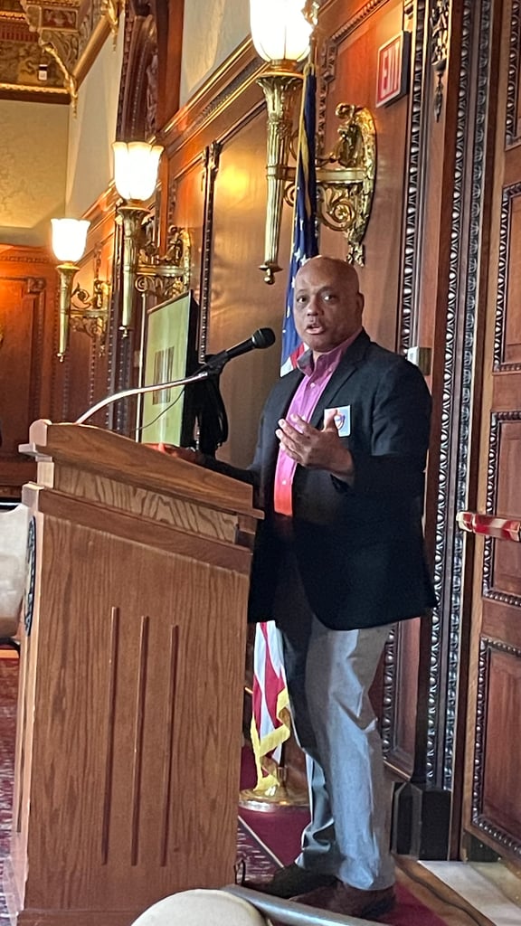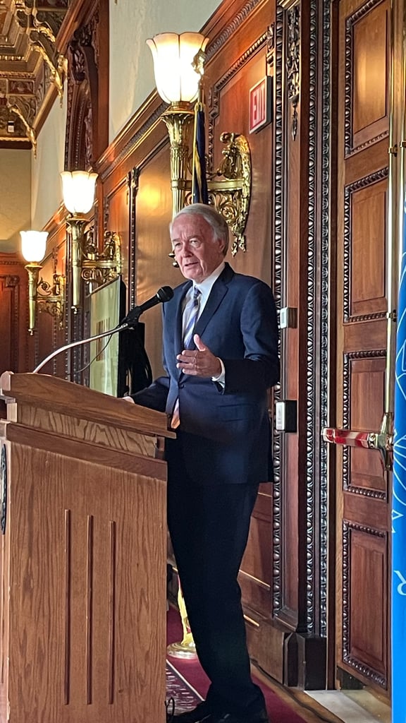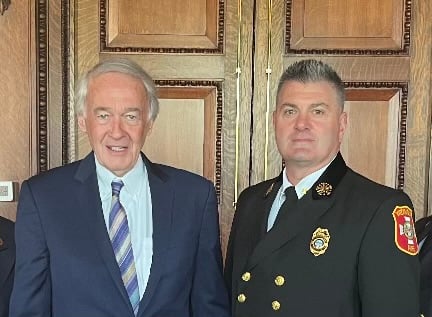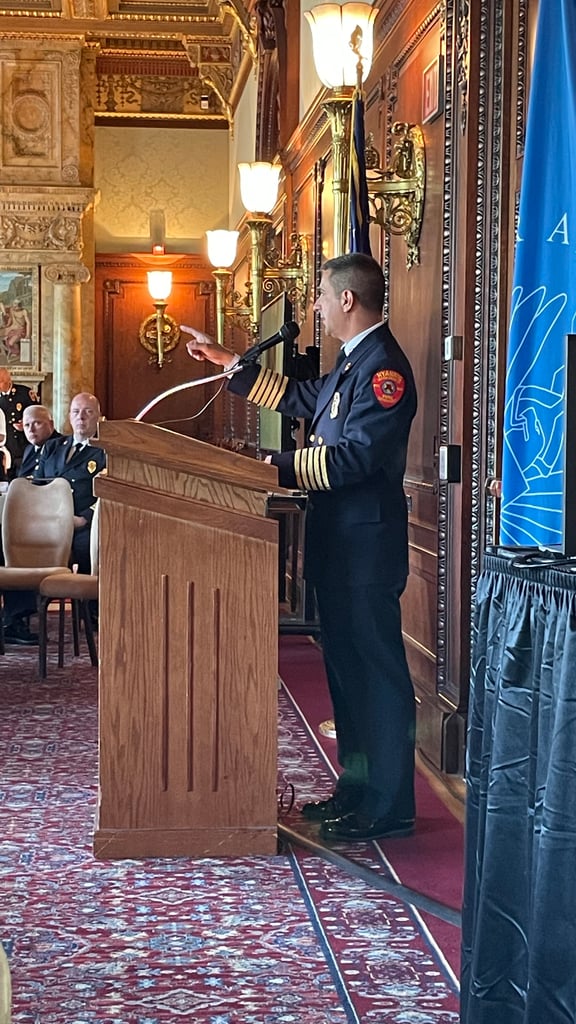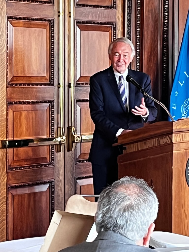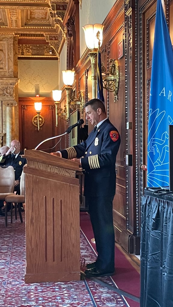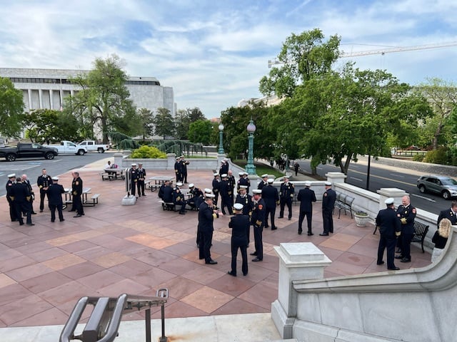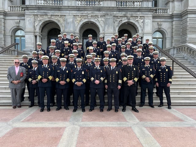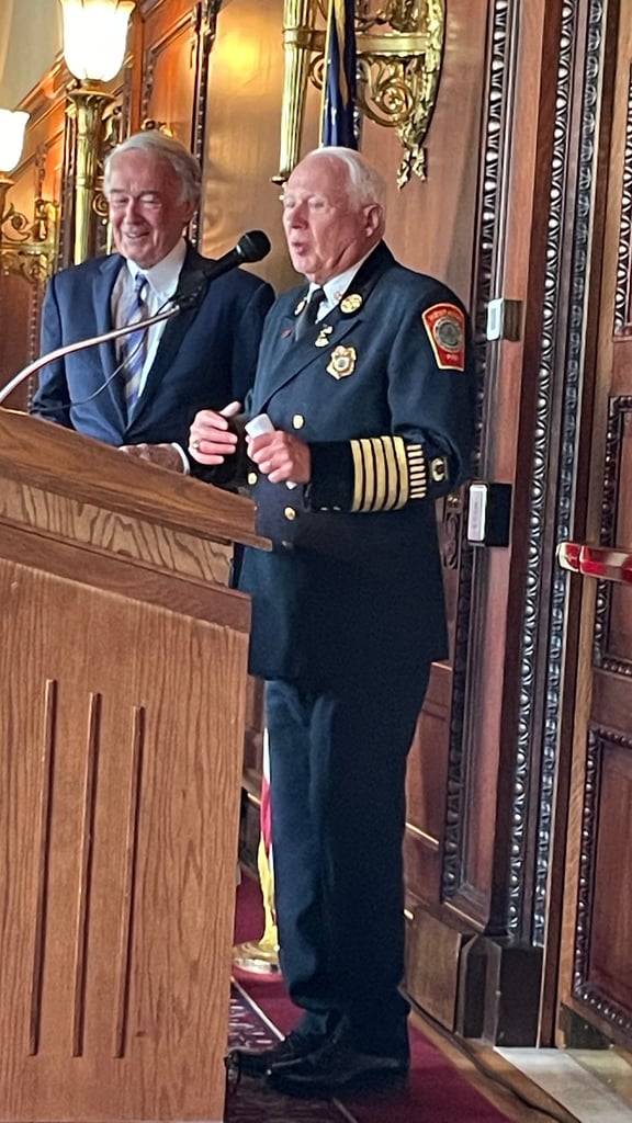 100 Massachusetts fire Chiefs visit Capital Hill on April 28, 2024 during the annual Congressional Fire Service Caucus Symposium and their annual Legislative breakfast with MA Delegation. Govermental Affairs Director Chief Bill Scoble Ret. Arrange the breakfast for the Fire Chief and the MA Congressional Delegation that is held every year at the Library of Congress, and soke to them about the important Ance of reauthorizing the Fire Grants and Safety Act legislation.