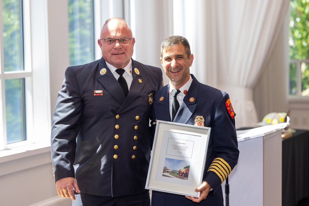 Burke who serves as the Fire Chief of Hyannis Fire Department, did an excellent job leading the association over the last year and with his Life Membership from outgoing Secretary Chief Jack Parow Ret. State Fire Marshal Jon Davine also presented Chief Burke with a plaque for his support and cooperation in working with the Department of Fire Services over the last year.