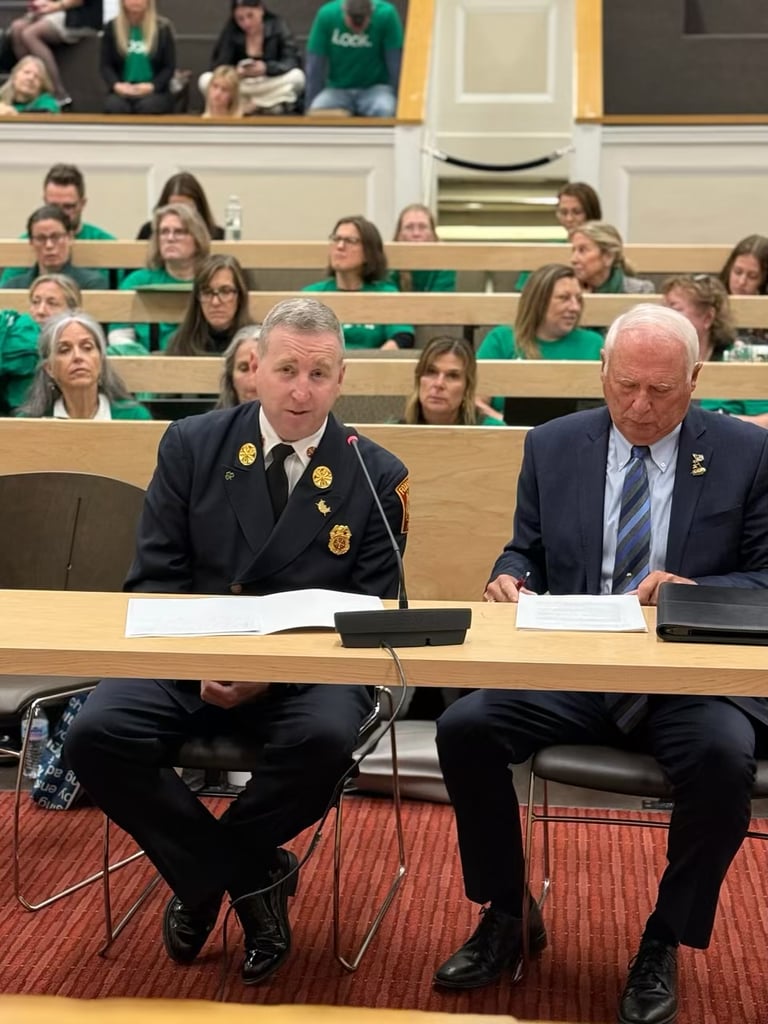 Chief Scoble; FCAM Governmental Affairs Director and Chief Michael Kelleher; IPP testified in front of the Joint Financial Services Committee at the Gardner Auditorium in the State House on the Patients Rights/Ambulance Reimbursement Bill.