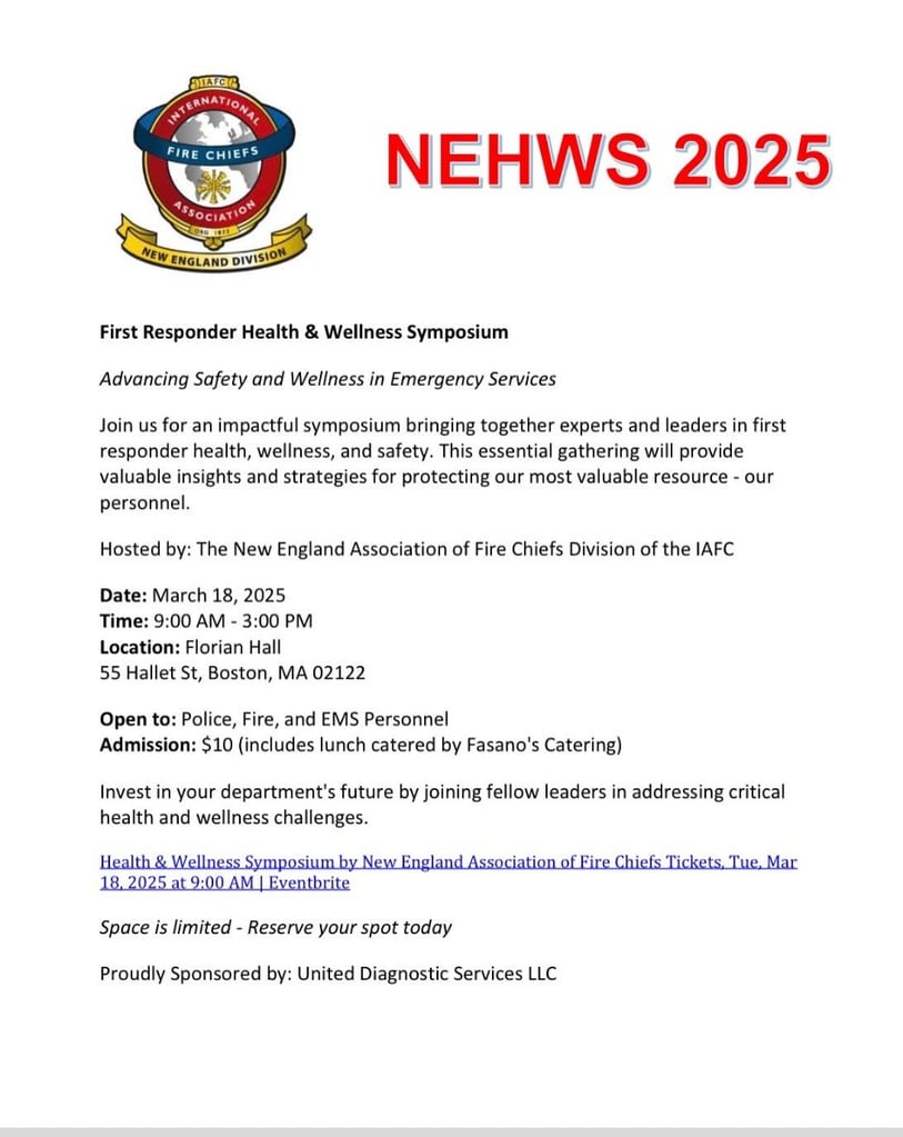 New England Assoc. of Fire Chiefs Division of the IAFC to host First Responder Health & Wellness Symposium March 18, 2025 March 4, 2025 Member Sign up link to follow Post navigation Previous Previous post: East Bridgewater Fire Department Open House for retiring Fire Chief Timothy M. HarhenNext Next post: First Responder Health & Wellness Symposium: Advancing Safety and Wellness in Emergency Services (copy)